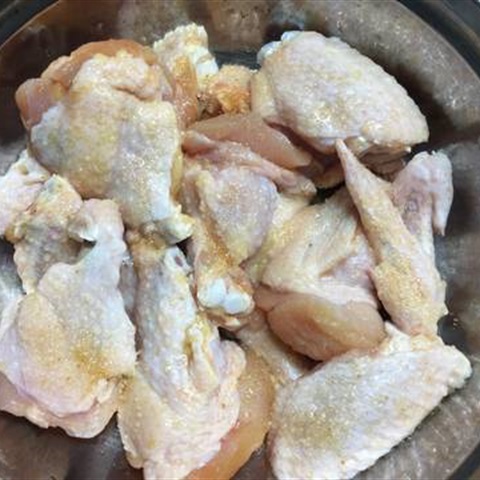 Cánh gà rửa sạch và nhẹ nhàng với muối rồi thấm khô. Sau đó cắt vừa ăn.